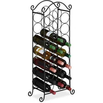 Relaxdays 10030860 Wine Rack, Holds 21 Bottles, H x W D: 88 33 20 cm, Iron, Black