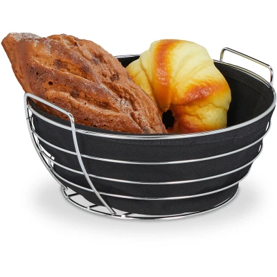 Relaxdays 10031045_46 Metal with Removable Fabric Insert, Round, Breakfast Basket for Bread and Rolls, Diameter 23 cm, Black, Iron