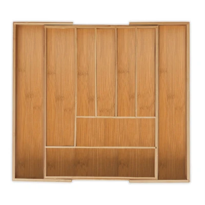 Relaxdays 10032171 Cutlery Tray, Extendable, 7 9 Compartments, HxWxD: 5 x 49.5 44.5 cm, Kitchen Drawer Insert, Bamboo, Natural, MDF