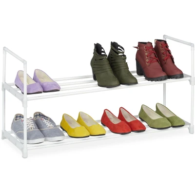 Relaxdays, 2 Levels, Plug In System, 8 Pairs, Hallway, Expandable, Metal & Plastic, Shoe Rack, White, 45 x 90 30.5 cm