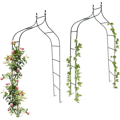 AmazonSet of 2: The rose arch provides plants with support for growth - For roses, ivy, vines etc. Decoration: The elegant climbing support impresses with its curved roof and 2 decorative tips Assembly: Lightweight plug-in system - Adjustable height - Secure footing 30 cm in the ground Weather-resistant: Powder-coated steel tubes - Can be placed free-standing in the garden Versatile: The climbing arch is an eye-catcher for roses and clematis - Chic climbing aid for plants