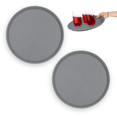 Relaxdays 2X Serving Tray, Round Ø 35 cm, Bar Drinks Plate, Non Slip Rubber Surface, Waiter's Catering, Versatile, Grey, 2 x cm