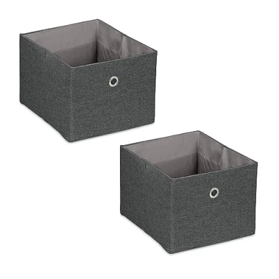 Relaxdays 2x Storage Boxes, Rectangular Fabric Basket, Container, no Lid, Shelf Organiser, 16 x 20.5 25 cm, Dark Grey, Linen, Polyester, Paper