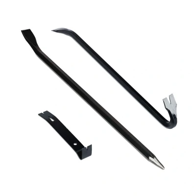 General description This crowbar set provides practical tools for demolition work, renovations, and installations. The 3-piece set consists of a crowbar, pry bar, and trim lever, making it ideal for pulling nails, opening joints, or removing trim. Made of hardened steel, these versatile and affordable lever tools fit securely in your hand and cover many areas of application. Technical specifications Crowbar dimensions (H x W x D): approx. 58 x 2 x 2.5 cm Crowbar weight: approx. 910 g Pry bar dimensions (H x W x D): approx. 30 x 2.5 x 1.5 cm Pry bar weight: approx. 320 g Trim lever dimensions (H x W x D): approx. 18 x 2.5 x 2 cm Trim lever weight: approx. 70 g Material: hardened steel Colour: black Included in Delivery 3x crowbars Decorative items not included
