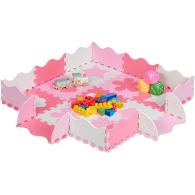 Relaxdays 34 Piece Jigsaw Playmat, Eva, Non toxic, Interlocking Foam Mats, Soft Play, Indoor Playtime, Pink/White, PE, PEVA