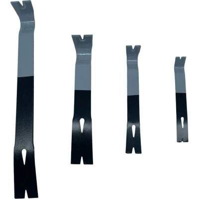 This crowbar set includes nail pullers in four different sizes and impresses with its high versatility. The flat design of the pry bars and three integrated nail slots enable precise, effortless work, even in hard-to-reach places. Meanwhile, the flattened lever edges of the pry bars protect sensitive surfaces when loosening strips or joints. Made from hardened steel, these extraction tools are ideal for workshops, construction sites, or home use. Crowbar 4-piece set in detail - Dimensions large L x W: approx. 38 x 3.5 cm - Dimensions medium L x W: approx. 25 x 3.5 cm - Dimensions small L x W: approx. 20 x 2.5 cm - Dimensions mini L x W: approx. 17.5 x 2.5 cm - Thickness: approx. 3 to 6 mm - Material: steel - Colour: black-grey Flat steel pry bars - Suitable for demolition, renovation, and woodworking - For pulling nails and opening joints - Flat design for gentle levering under mouldings and panels - With 3 nail slots for flexible use from different angles - Available in 4 different