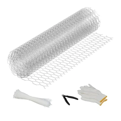 Versatile: wire mesh for small animal enclosures, pest protection and garden design Individual: wire mesh H x L: approx. 40 cm x 5 m - Can be cut to size - Includes wire pliers Galvanised: sturdy rabbit wire made of steel. Wire thickness: approx. 0.5 mm – Weatherproof wire mesh fence Flexible: flexible wire with approx. 15 x 25mm Mesh Size - Hexagonal Braid for Craft Projects Details: rabbit wire with accessories - includes wire pliers, 1 pair of gloves and 100 cable ties