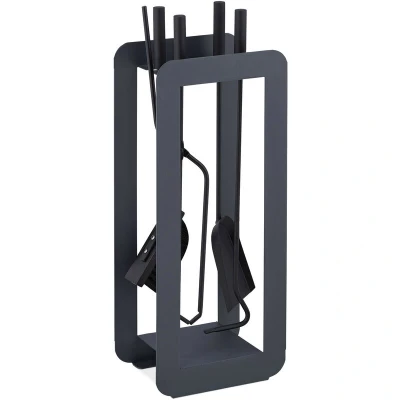 General description A crackling fireplace warms you up on cold and rainy days, when comfort and coziness are essential. With the Relaxdays 5-Piece Fireplace Companion Set, you can successfully kindle your fire and ensure the pit always stays clean. Made from steel, this set is especially stable and durable, featuring stainless steel handles that add a modern and luxurious touch. The stand, designed with a half-round back panel, is not only functional but also serves as a visual highlight. Technical specifications Dimensions of stand (H x W x D): approx. 60 x 22.5 x 16 cm Length of poker: approx. 51 cm Length of ash shovel: approx. 49 cm Length of ash broom: approx. 47 cm (bristles approx. 6 cm) Length of stove tongs: approx. 51 cm Total weight of set: approx. 3.8 kg Material: steel, stainless steel, wood Colour: grey, black Included in Delivery 1x oven broom 1x ash shovel 1x chimney poker 1x fireplace tongs 1x fireplace tool holder Decorative items are not included in the scope of