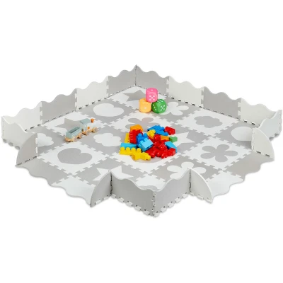 Relaxdays 52 Piece Jigsaw playmat, EVA, Non Toxic, Interlocking Foam mats, Soft Play, Different Designs, Grey/White, 31.5 x 1 cm