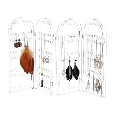 Amazon MarketplaceMore space: Holder with plenty of room for your favourite jewellery - With 4 compartments For a perfect overview: 240 hooks and holes for storage - Transparent organiser Variable: Folding acrylic stand - Can be folded up for a more compact size - Portable High-quality: Made of robust and clear acrylic - Simple design - Easy-care material Multipurpose: Foldable for a vast array of presentation options - Perfect for earrings, necklaces etc.
