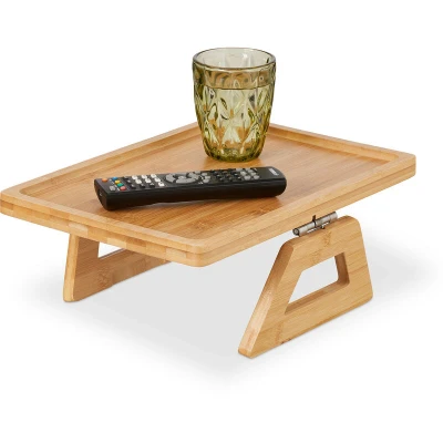Relaxdays Arm, Bamboo, Square Armrest Table, Sofa Tray for Drinks & Snacks, W x D: 35 26.5 cm, Natural, 13 cm