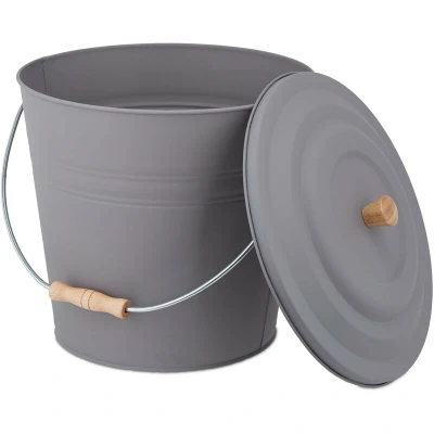 AmazonFor ashes: Grey metal bucket for storing and disposing of ashes - With approx. 12 litre volume Accessories: Ash container for cleaning fireplaces, stoves and barbecues - Handle for easy carrying Features: Round coal bucket with lid to protect against blowing away - Furniture stays dust-free Durable: Ash bucket made of steel with powder coating in matt grey - Robust ash container Universal: Metal bucket can be used for storing charcoal and wood bricks - HWD: 32 x 35.5 x 33 cm