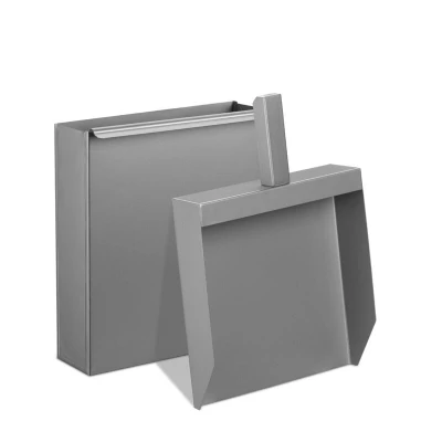 General description The angular ash bin with integrated fireplace shovel is the ideal addition to your fireplace accessories. The coal bucket offers enough space for the ashes of a burnt-out fireplace, which can be conveniently removed with the fireplace shovel. At the same time, the fireplace bucket securely encloses the ash shovel, protecting the ash from blowing away. Thanks to the practical handle, the ash bin is easy to carry and uncomplicated to empty. Technical specifications Overall dimensions (H x W x D): 35.5 x 23 x 9 cm Volume: approx. 3 litres Heat resistant up to: 200 °C Weight: approx. 1.5 kg Material: Steel (powder-coated) Colour: Silver Included in delivery 1x ash bucket 1x ash shovel Decorative items are not included