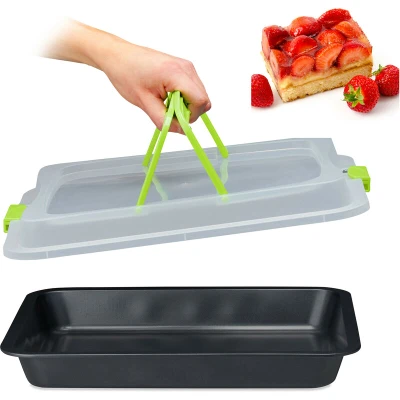 Relaxdays Baking Tray with Lid, Cake Carrier, Kitchen Storage Container Handles, 3in1, WxD: 40x33, Green & Black