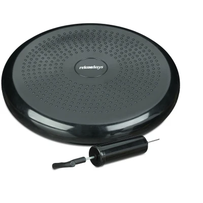 Relaxdays Balance Disc, 33 cm Stability Wobble Cushion with Air Pump, Pillow Nubs, Fitness Board, Black