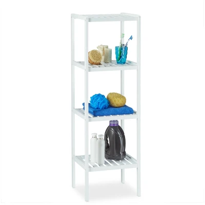 Relaxdays Bamboo Bath Rack with 4 Shelves, HxWxD: 110 x 34.5 33 cm, Tall Freestanding Shelving Unit, Wooden, White