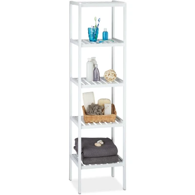 Relaxdays Bamboo Bath Rack with 5 Shelves, HxWxD: 139.5 x 34.5 33 cm, Tall Freestanding Shelving Unit, Kitchen White