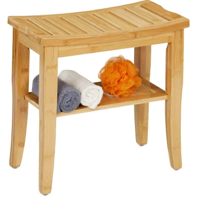 Relaxdays Bamboo Bathroom Bench, Seat with Extra Storage Space, HxWxD: 45.5 x 48 25 cm, Hallway & Bathroom, Natural