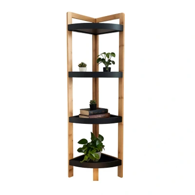 Relaxdays Bamboo Corner Shelf, 4 semi circular shelves, HWD: 105.5x23x23 cm, space saving, natural/black
