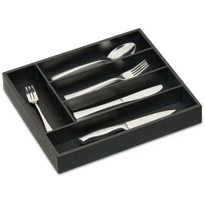 Relaxdays Bamboo Cutlery Tray, 5 Compartments, HWD: x 34 30 cm, Kitchen Drawer Insert, Silverware Organiser, Black, 90% 10% fibreboard