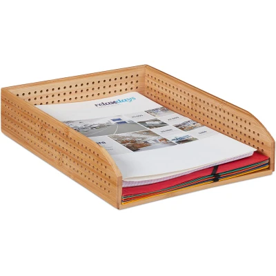 Relaxdays Bamboo Document Holder Tray, Perforated, Stackable, A4, Desk Organizer, Office, Natural, HWD: app. 7 x 25 33 cm