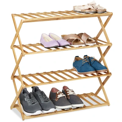 Relaxdays Bamboo Rack 4 Levels, 12 Pairs, Shoes Storage for Hallway, HWD: 68 x 67 26 cm Foldable, Stable, Natural