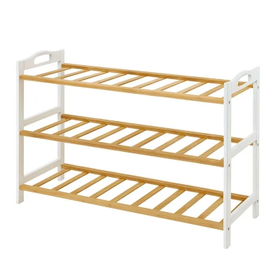 Relaxdays bamboo shoe rack, HWD: 48 x 70 25 cm, 3 tiers for 9 pairs, stand with open shelves, brown/white