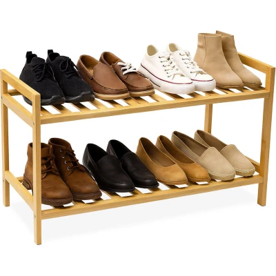 Relaxdays bamboo shoe rack, HxWxD: 40 x 69 27 cm, 2 tiers for 6 pairs, stackable, natural