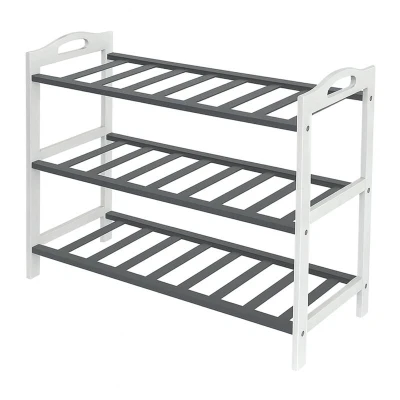 Relaxdays bamboo shoe rack, HxWxD: 48 x 70 25 cm, 3 levels for 9 pairs, open design, grey/white