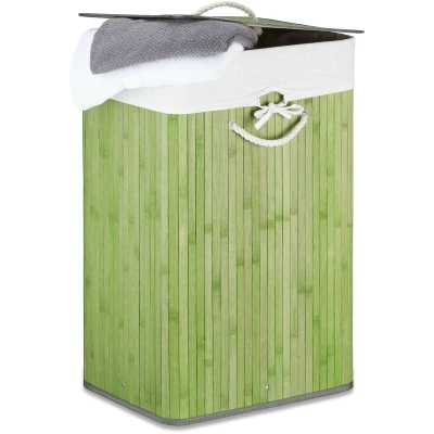 Relaxdays Bamboo Square Hamper, 65.5 x 43.5 33.5 cm, Folding Laundry Basket, 83L, Rectangular, Green, cm