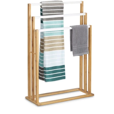 Relaxdays Bamboo Stand Size: Approx 82 x 54 24 cm Ascending Holder w/ 3 Rails as Elegant Bathroom Accessory Freestanding Rack for Bath and Hand Towels Style, Natural Brown/White,