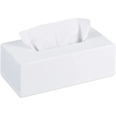 General description This handy bamboo tissue box ensures that you no longer have to rummage around your apartment for tissues. It provides easy access to standard facial tissues and adds a decorative touch to your bathroom, kitchen, or living room. Technical specifications Dimensions (H x W x D): 7.5 x 24 x 12 cm Size of the opening (W x D): 13.5 x 3 cm Material: Bamboo Weight: 400 g Color: White Compatibility and accessories Compatible with all standard tissues Included in delivery: 1 x Tissue Box Installation To refill the bamboo holder, simply slide the floor panel to the side. Usage Large opening for easy access to tissues.