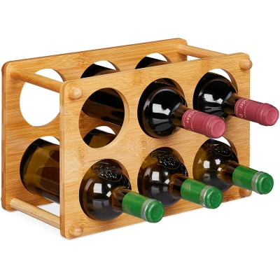 AmazonStorage: Store wine bottles horizontally - Corks do not dry out Modern: Elegant wine display, support has an arch-shaped form 6 Bottles: Stand can store 6 bottles - Ideal wine accessory for connoisseurs Natural: Bamboo is a robust material and especially moisture resistant Basics: Elegant bamboo wine stand - Storage room for 6 bottles - H x W x D app. 21 x 32 x 18.5 cm, Weight: 1.3668660244 pounds, Manufacturer: Relaxdays