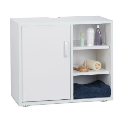 Relaxdays Basin Vanity Unit, One Door, Bathroom Under Sink Cabinet, Siphon Cut Out, White, 51x60x32 cm