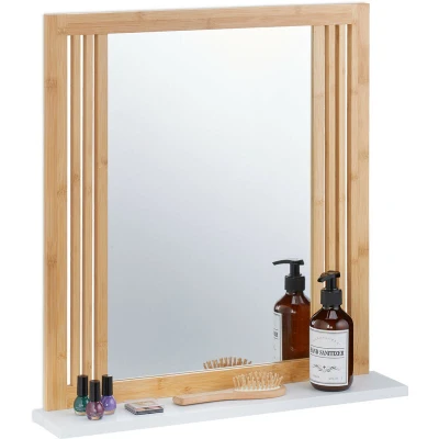 Relaxdays Bathroom Mirror with Shelf, Bamboo & MDF, Rectangular, HxWxD 56.5 x 54 10 cm, Wall Mounting, Natural/White