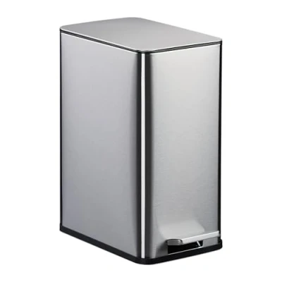 General description Keep your bathroom clean and hygienic with this modern pedal bin. The foot pedal allows for hands-free disposal of sanitary and make-up waste. The soft-close mechanism ensures that the lid of the bin closes gently and silently. The removable plastic bucket with practical carrying handles makes emptying the bin easy. This bathroom bin looks great in any home with its contemporary design. Technical specifications Dimensions (H x W x D): approx. 38 x 18.5 x 28 cm Volume: approx. 10 l Weight: approx. 2.2 kg Material: Iron, stainless steel, plastic Other information Available in various colours Practical hole for securing the bin liner Square sanitary bin with soft-close mechanism