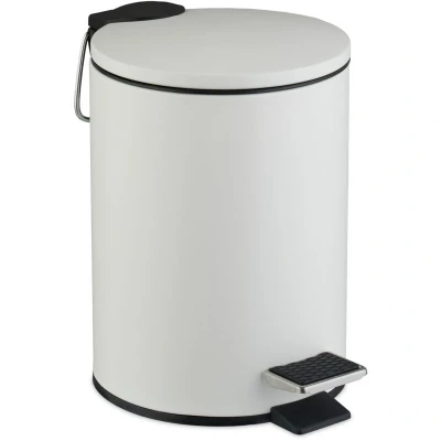 AmazonClean: Waste bin with 3 litre volume - for disposing of sanitary waste in bathroom and guest toilet Design: Round matte white metal bathroom bin - perfect for modern bathroom interiors Soft-close: Cosmetic bin with soft-close feature to ensure gentle and quiet lid closure Hygienic: Removable plastic inner bin with handle - Easy to empty the bathroom bin in a hygienic way Practical: Bathroom rubbish container with pedal for hands-free lid opening and closing