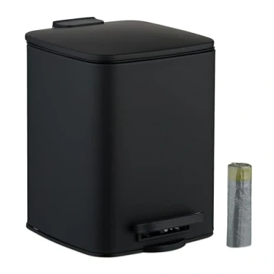 AmazonClean: 6 litre waste bin for hygiene waste disposal in the bathroom - Includes 25 bin liners Design: Square metal bathroom bin in matte black - Perfect for modern bathroom interiors Softclose: Cosmetic bin with soft-close feature for quiet and gentle lid closure Hygienic: Removable plastic inner bucket with handle - Easy to empty the bathroom sanitary bin Practical: Bathroom rubbish bin with a pedal for hands-free lid operation