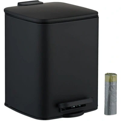 Relaxdays Bathroom Pedal Bin, 6 Litres, Soft Close Lid, Removable Inner Bucket, Metal, Sanitary Waste, Toilet, Black