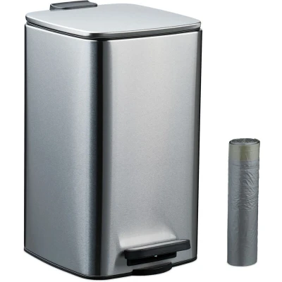 You can dispose of your sanitary waste hygienically and conveniently in this square pedal bin, suitable for both the bathroom and the dressing table. The practical foot pedal allows for hands-free opening, while the soft-close function ensures the lid closes gently and quietly. The removable plastic inner bin, featuring practical grip holes, makes emptying the rubbish bin effortless. Visually, this bathroom waste bin adds a modern touch with its sleek metal surface. Cosmetics Bin in Detail - Dimensions H x W x D: approx. 33.5 x 20 x 23.5 cm - Volume: approx. 8 litres - Weight: approx. 1.4 kg - Material: Iron, stainless steel, plastic - Available in various colours Square Sanitary Bin with Soft-Close Mechanism - Designed for sanitary waste in the bathroom, guest WC, or at the dressing table - Foot pedal for hands-free opening and closing - Lid closes gently and quietly, thanks to the soft-close feature - Removable inner bin for easy emptying - Includes bin liners - Features a recessed