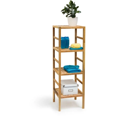 AmazonCharming walnut wood shelving unit with fine wood grain patterns Available with either 3, 4 or 5 shelves Wooden rack in natural, Nordic style Practical & aesthetically pleasing storage space for your bathroom, hallway, living room or porch Size with 4 shelves: approx 117 x 35.5 x 35.5 (46.1 x 14 x 14 in); Weight: approx 4.7 kg (10.4 lbs)