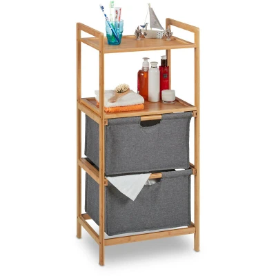 Relaxdays Bathroom Shelf, with 2 Shelves & Fabric Baskets, Bamboo Laundry Sorter, HWD: 96 x 44 34 cm, Natural/Grey