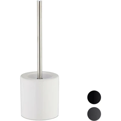 This toilet accessory set is the perfect combination of design and functionality. The ceramic holder will lighten up your bathroom. The matching toilet brush has a plastic head and a chromed metal handle, which guarantees an essential sanitary hygienic standard. The best part about this set is that you do not have to throw away the whole brush. Simply screw off the head and replace it with a new one. This way, you are taking care of planet Earth and of your bank account at the same time! Ceramic Toilet Accessory Set in Detail - Total size H x D: approx. 38.5 x 12.5 cm - Toilet brush H x D: approx. 35.8 x 8 cm - Material: Ceramic, chromed iron and PP - Weight: approx. 0.8 kg - Available in different colours Round Ceramic Bathroom Set - Flexible brush holder - Open container to quickly dry the brush - Toilet brush with long-lasting, plastic bristles - Handy, removable brush head - Modern and high-quality design Included in Delivery - 1x Ceramic brush holder - 1x Toilet brush