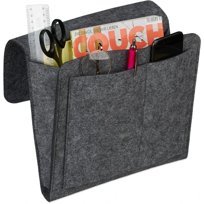 Relaxdays Bed Pocket, Hanging Bedside Storage, 5 Sections, Sofa & Armchair, Organiser, Felt, 27 x 31.5 cm, Dark Grey, 26 28 5cm
