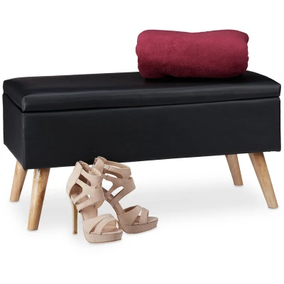 Relaxdays Bench with Storage Space, 40 L, Padded, Wooden Legs, Faux Leather, H x W D: 80 39.5 cm, Black