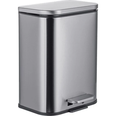 AmazonSmall: 5-litre bin for general waste in the bathroom or organic waste in the kitchen. Handling: Practical bathroom bin with pedal – easy, hands-free waste disposal Soft Close: Bathroom bin with practical soft-close feature for quiet and gentle lid closure. Hygienic: the removable inner bucket of the kitchen bin makes emptying simple Details: Stainless steel waste bin with anti-fingerprint finish, H×W×D approx. 27×21×19 cm