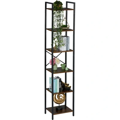 Relaxdays Bookcase, 6 Tiers, 187x40x32 cm, Shelving Unit, Industrial, Open Storage, Free Standing Bookshelf, Brown/Black