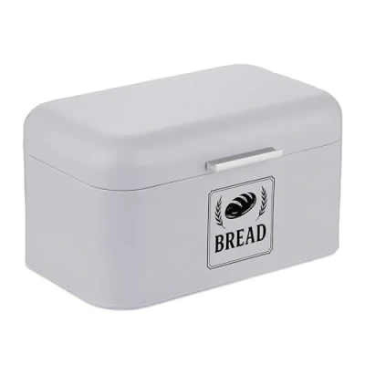 Amazon MarketplaceStylish grey bread bin with handle in retro design - HWD approx 16.5x30x19 cm - Ideal for kitchen Compact: bread bin ideal for small kitchens - saves space and keeps baked goods well stored Practical: Large bread bin keeps baked goods fresh for longer – for aromatic, mould-free bread Robust: Bread storage box with sturdy metal body - Perfect for daily kitchen use Easy to clean: bread bins with smooth surfaces – quick to wipe with a damp cloth