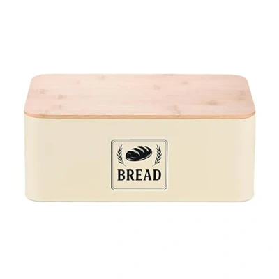 AmazonPractical: Beige bread box with a secure bamboo lid – keeps your baked goods fresher for longer Robust: Bread storage box with sturdy metal housing - For daily use in the kitchen Stylish: bread box in a retro design with 'Bread' print – dimensions approx. 13.5 x 33 x 19 cm Easy to clean: bread bin with smooth surfaces – quick wipe with a damp cloth Flexible: storage box for bread, rolls, toast, croissants, cakes or biscuits