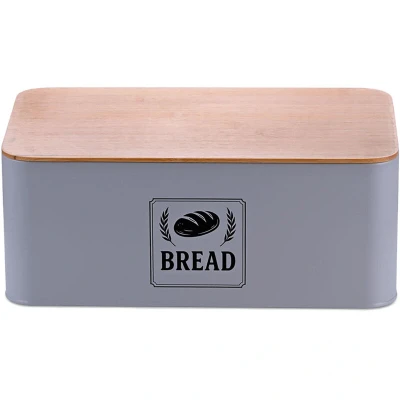 AmazonPractical: Grey bread bin with a snug bamboo lid – keeps your baked goods fresher for longer Robust: Bread storage box with sturdy metal body - Ideal for daily kitchen use Stylish: bread box in retro design with 'Bread' lettering – dimensions approx. 13.5 x 33 x 19 cm. Easy to clean: bread bin with smooth surfaces – quick to wipe with a damp cloth Flexible: bread box for storing bread, rolls, toast, pastries, cakes or biscuits